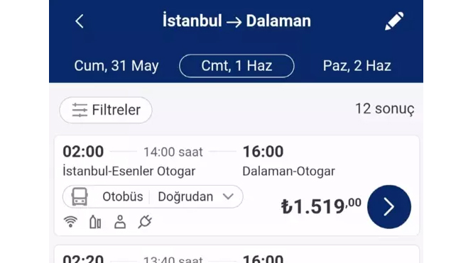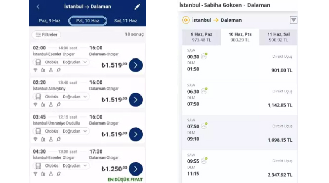 Otobüs bilet fiyatlarına ilişkin açıklamalarda bulunan Tüm Otobüsçüler Federasyonu (TOF) Başkanı Mustafa Yıldırım, otobüs firmaları 4 aylık periyotlar halinde Ulaştırma Bakanlığı'na fiyatlarını belirttiğini ancak bu süre içerisinde akaryakıt zamlarını ön gören firmaların yüksek fiyatla onay aldığını söyledi. Yüksek fiyatların normal günlerde uygulanmadığını yüzde 30 indirim ile biletlerin satıldığını vurgulayan Yıldırım, sadece bayramlarda ve tatil günlerinde firmaların tavan fiyatı uyguladığını açıkladı. Mustafa Yıldırım, artan akaryakıt fiyatları, otoban ve köprü geçiş ücretleri ve firmaların komisyon kesmelerinin fiyatlara yansıdığını belirtti. Firmaların internet üzerinden bilet satışı yaptıkları sitelere bakıldığında 1 Haziran'da İstanbul'dan Dalaman'a gidecek bir yolcu için bin 500 liraya otobüs bileti varken, aynı tarihte Sabiha Gökçen Havalimanı'ndan Dalaman'a 550 liraya uçak bileti bulunuyor. 10 Haziran'da ise 900 liraya uçak bileti bulunurken, aynı tarihte bin 250 liraya otobüs bileti satıldığı görülüyor.