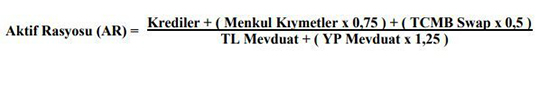 AR formülünde pay kısmı krediler, bankaların bilançosundaki menkul kıymetlerin yüzde 75’i ve TCMB ile yaptıkları takas (swap) kontratlarının yüzde 50’sinin toplamından oluşurken, payda TL mevduat ile yabancı para mevduatın yüzde 125’inin toplamından oluşuyor.