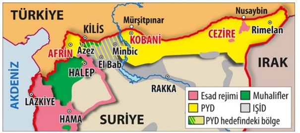 Savaşın başlamasından bir yıl sonra Suriye ordusunun çekilmesinin ardından, Rojava adı verilen Suriye’nin kuzeyi, Kürtlerin yönetiminde fiili özerk bir bölge oldu. Demokratik Birlik Partisi (PYD), 2014’te Rojava’daki üç kantonda, Afrin, Kobani ve Cezire’de ‘Demokratik Özerk Yönetim’ ilan etti. Suriyeli Kürtler, Irak sınırından Fırat Nehri’ne kadar 400 km’lik bir alanı kontrol ediyor.