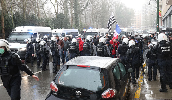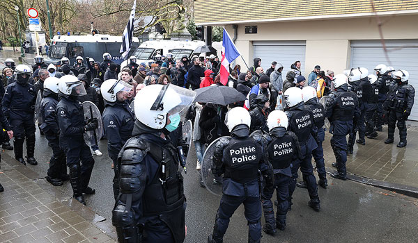Onlarca kişi Avrupa Birliği kurumları yakınındaki 50. Yıl Parkı (Parc Cinquantenaire) girişinde ve Sainte-Catherine Meydanı yakınında protesto gösterisi yaptı.