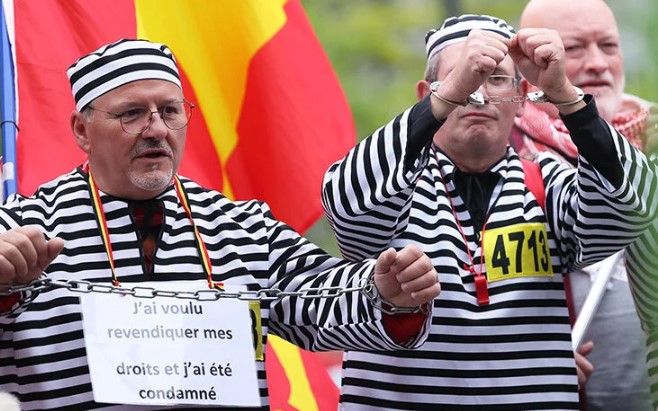 Renkli giysiler ve flamalarıyla ülke genelinden farklı sendikaların temsilcileri, yerel saatle 11.00 civarında başkent Brüksel'deki Kuzey Tren İstasyonu'nda buluştu.