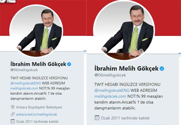 Ankara Büyükşehir Belediye Başkanlığı’ndan 28 Ekim’de istifa eden Melih Gökçek, aktif olarak kullandığı Twitterhesabındaki profil bilgilerinden Ankara Büyükşehir Belediyesi’ni sildi. Gökçek’in bilgilerinin konum kısmında Ankara Büyükşehir Belediyesi yer alırken, internet sitesi kısmında da belediyenin sitesindeki özgeçmişinin linki bulunuyordu. Melih Gökçek istifasının ardından mevcut bilgileri bir süre kaldırmamıştı.