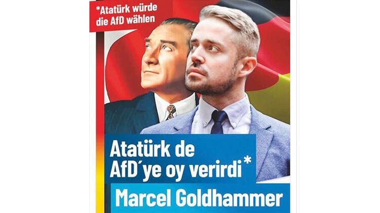 26 Eylül’de yapılacak genel seçimlerde, aşırı sağcı parti AfD’den aday olan Marcel Goldhammer ile Berlin Eyalet Parlamentosu milletvekili Frank-Christian Hansel için hazırlanan dijital afişlerde, Türkiye Cumhuriyeti’nin kurucusu Mustafa Kemal Atatürk’ün fotoğrafı kullanıldı. Afişlerin birinde, AfD’nin Berlin’in göçmen mahallelerinden Neukölln adayı Marcel Goldhammer ile Atatürk’ün fotoğrafları arka arkaya yer alıyor ve Türkçe olarak “Atatürk de AfD’ye oy verirdi” ifadeleri yer alıyor.