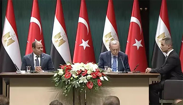 Cumhurbaşkanı Erdoğan ve Mısır Cumhurbaşkanı Abdulfettah es-Sisi, iki ülke arasındaki anlaşmaların imza töreninin ardından ortak basın toplantısı düzenledi.