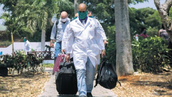 Mart ayında, içinde büyük bölümü İngiliz vatandaşı olan 700 yolcu bulunan “MS Braemar” gemisini kabul eden ve buradaki Kovid-19 hastalarını tedavi eden Küba, salgının başından bu yana Avrupa’dan Latin Amerika’ya, Afrika’ya kadar pek çok ülkeye doktor gönderiyor. Son olarak 200’den fazla Kübalı doktor, koronavirüs salgınıyla mücadele etmeye çalışan ve bu konuda pek çok ülkeden yardım isteyen Güney Afrika’ya gitti. Güney Afrika, Küba’ya tıbbi malzeme bağışı taşıyan bir uçak göndermiş, aynı uçak, bu kez Kübalı doktorlarla dönmüştü.