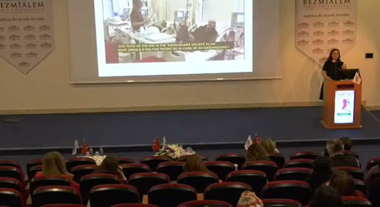 Prof. Dr. Meltem Gürsu da Nefrolog Gözüyle Afet Sonrası Öneriler başlığıyla bir sunum gerçekleştirdi. Sıkça meydana gelen afetlere karşı hazırlıklı olunması gerektiğini belirten Gürsu, afetlerin etkilediği hastalıkları, kardiyovasküler hastalıklar, diyabet, kronik solunum hastalıkları ve kronik böbrek hastalıkları olarak sıraladı.