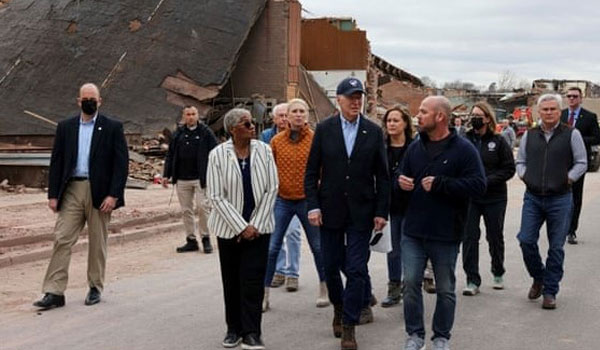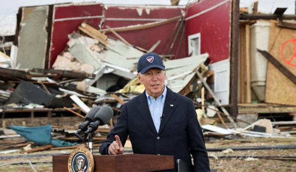 ABD Başkanı Joe Biden kasırgadan en çok etkilenen Kentucky eyaletine bağlı Dawson Springs kasabasında bölge halkıyla biraraya geldikten sonra bir konuşma yaptı. Biden, bölgenin toparlanması için federal hükümetin ne gerekiyorsa yapacağını söyledi.