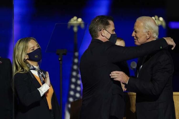 Joe Biden, Cumartesi gecesi, 2020 ABD Başkanlık seçimlerini kazandığını duyurduktan sonra, torunlarından altı tanesini sahnede karşıladı.Aralarında eksik olan, Biden'ın oğlu Hunter Biden'ın striptizci Lunden Roberts'tan olan ve utançla reddedilen iki yaşındaki kızı Navy Joan Roberts'tı.