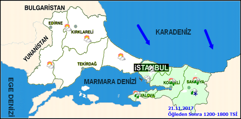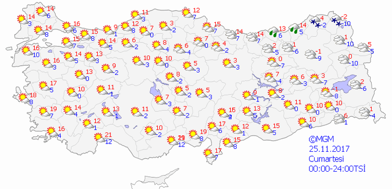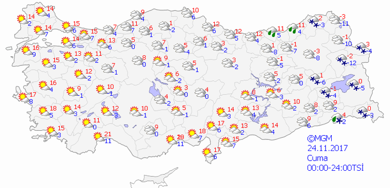 Öte yandan Meteoroloji Genel Müdürlüğü'nden yapılan son değerlendirmelere göre, yurt genelinin parçalı yer yer çok bulutlu, Marmara'nın doğusu, İç Anadolu, Karadeniz, Doğu Akdeniz, Doğu ve Güneydoğu Anadolu bölgeleri ile Afyon, Kütahya ve Isparta çevrelerinin yağışlı geçeceği tahmin ediliyor.