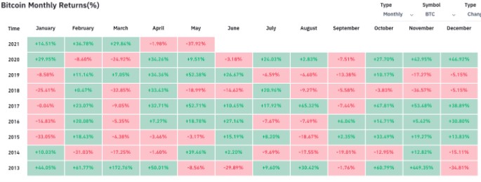 Kıyaslama yapılırsa, mayıs ayı BTC/USD paritesi için genellikle kazançlı geçer. Söz gelimi 2017 ve 2019 yıllarındaki mayıs aylarında yüzde 50'den fazla kazanç elde edilmişti.
