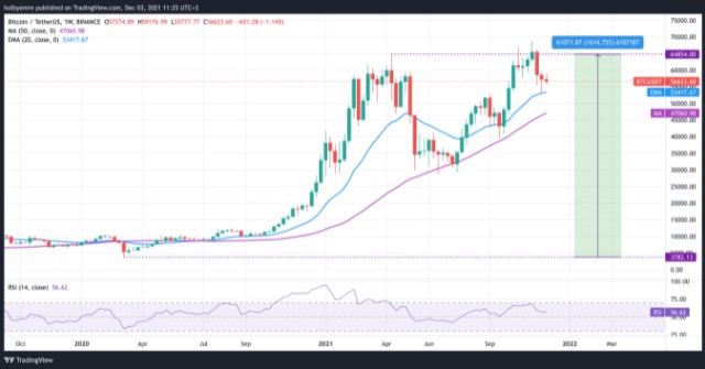 BTC/USDT paritesine ait haftalık grafik. Kaynak: TradingView