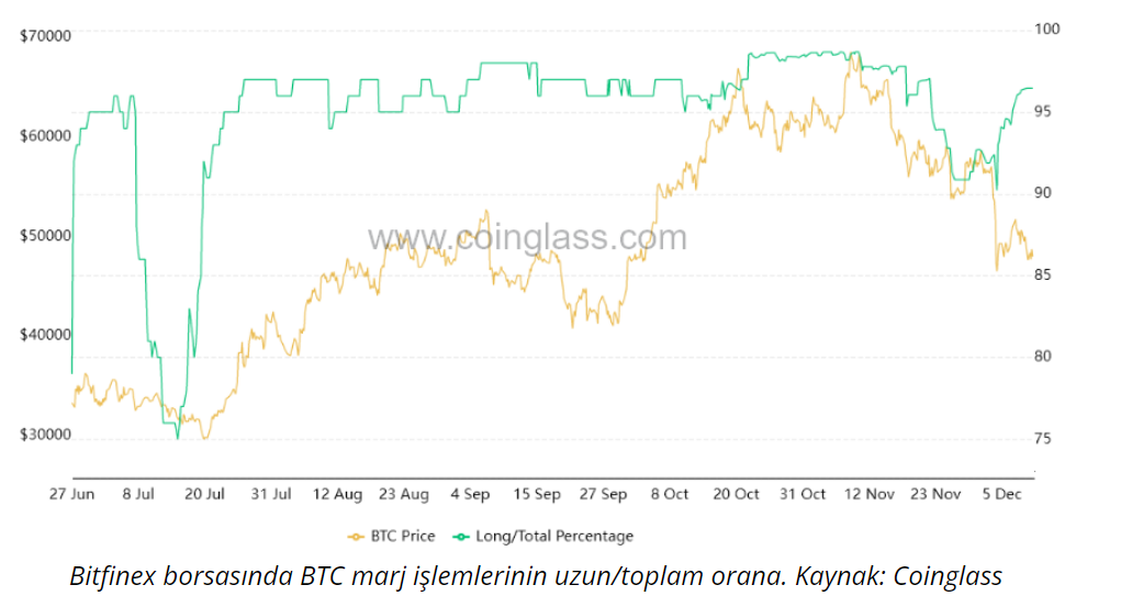 Bu nedenle bazı analistler, yatırımcıların yükselişe mi yoksa düşüşe mi meyilli oldukları konusunda fikir edinmek için toplam Bitcoin ve stablecoin borç verme miktarlarını izler. İlginç bir şekilde Bitfinex borsasındaki marj yatırımcıları, 4 Aralık'taki fiyat çöküşünden önce uzun pozisyonlarını hafifçe düşürdü.