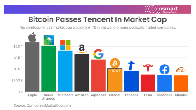 CoinSmart kurucu ortağı ve CEO'su Justin Hartzman, Cointelegraph'a yaptığı açıklamada "Yeni rekor seviyeye ulaşan Bitcoin, Çinli teknoloji devi Tencent'i geride bırakarak dünyanın en büyük halka açık şirketleri listesinde 6'ıncı sıraya yerleşti" diye belirtti ve ekledi: