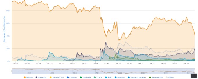Bitcoin'in piyasa hakimiyeti, Ocak 2018'den beri ilk kez yüzde 40'ın altına geriledi.