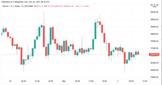 BTC/USD paritesi, perşembe günü 57 bin dolara gerileyerek 24 saat önce başladığı noktaya geri döndü.