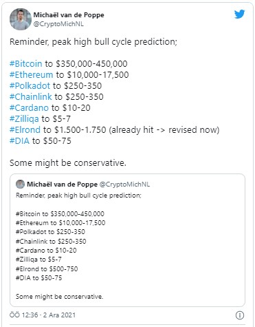 Analist, mevcut boğa döngüsünde pik noktanın hangi seviye olacağına dair fikrini de güncelledi ve 400 bin dolara kadar yükselişin mümkün olduğunu ileri sürdü.