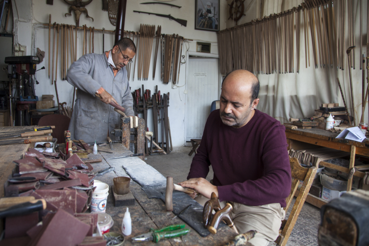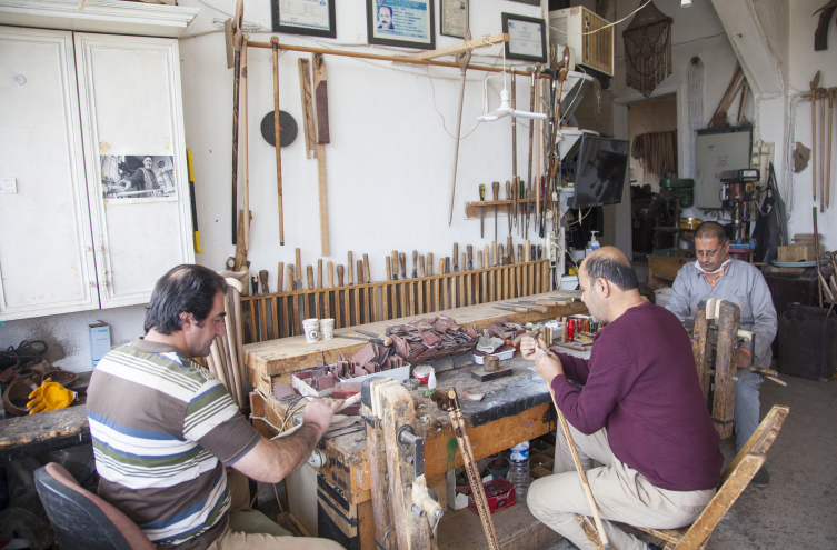Ahlat'ta en önemli el sanatları arasında yer alan bastonculuk mesleğini yaşatan 54 yaşındaki Gökbulak, asırlık ceviz ağacı ile koç, manda ve sığır boynuzu kullanarak birbirinden farklı bastonlar tasarlıyor.