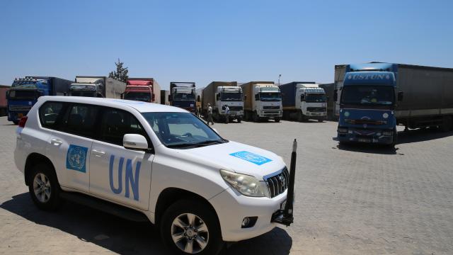 Birleşmiş Milletler (BM)'in yardımlarını taşıyan tırlar, Hatay'ın Reyhanlı ilçesindeki Cilvegözü Sınır Kapısı'ndan geçiş yaptı.