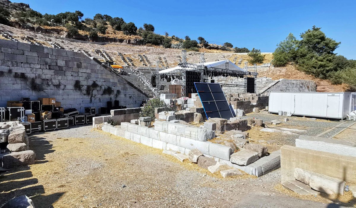 Muğla'nın Bodrum ilçesindeki 2500 yıllık Antik Tiyatro'da yaz aylarında hemen her gün bir konser düzenlenmesi ve konserler nedeniyle tarihi mekanın içerisinde yer alan sahne, seyyar tuvalet, büfe, orkestra malzemeleri, seyyar kulis odaları nedeniyle yerli ve yabancı turistlerin ziyaretine kapatılıyor.