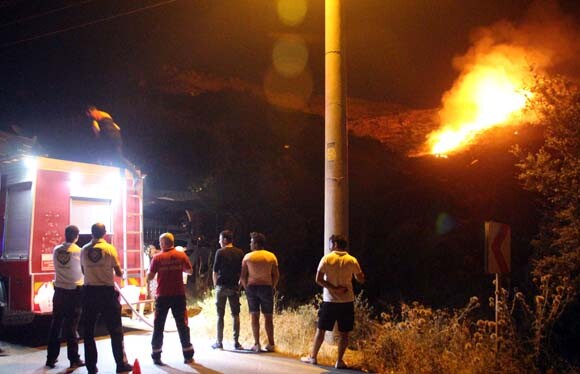 Gece yarısı makilik ve otluk alanda çıkan yangına çok sayıda orman ve itfaiye ekibi müdahale etti.