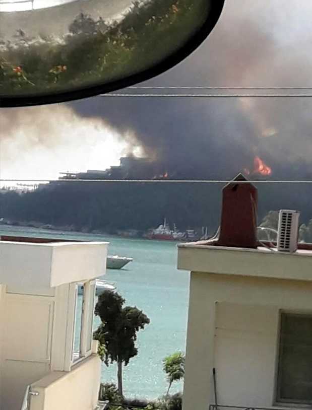 Alevler bölgedeki 5 yıldızlı 2 otelin bahçesine kadar dayandı. Alevlere 8 arazöz ve 6 itfaiye aracı ve 40 orman işçisi ile müdahale edildi. İş makineleri ile da ormanlık alanda yol açma çalışmaları sürüyor.