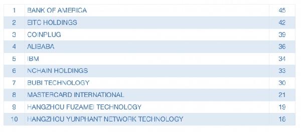 45 patentle birinci sırada yer alan Bank of America, kurumsal şirketlerin kripto para birimlerinin büyük potansiyeline inanmaya başladığını ortaya koyarken, yatırım şirketi EITC Holdings 42 patentle ikinci sırada ve Güney Kore merkezli komisyon şirketi Coinplug ise 39 patentle listede üçüncü sırada yer aldı.