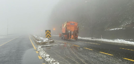 Elmalık, Bakacak ve Karanlıkdere mevkilerinde sis nedeniyle görüş mesafesi düşerken, karayolları ekipleri, kar küreme ile buzlanma riskine karşı tuzlama çalışmaları yapıyor.