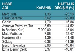 HAFTANIN EN FAZLA KAYBETTİREN HİSSELERİ