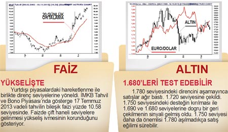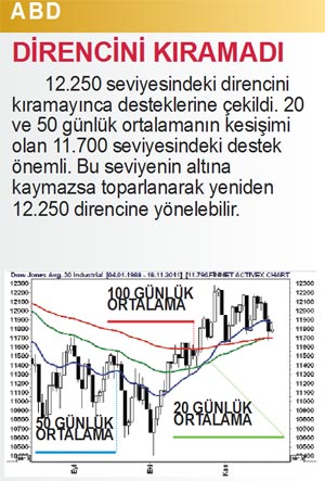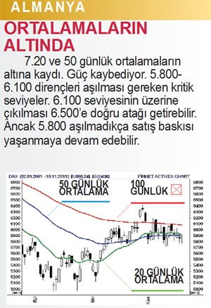 Avrupa’da artan tansiyon iç piyasalara da yansıdı. İMKB 100 Endeksi güçlü destek seviyelerinin altına çekilirken para piyasaları hareketlendi. Dolar yükselişe geçerken altın geriledi. İMKB 100 Endeksi’nde zayıf bir görünüm gözleniyor. Faizlerde 10.50 seviyesinin üzerindeki hareket borsa açısından olumlu olmayan bir seyir. Yukarı doğru hareketlerde tepeler giderek alçalmaya başlıyor. Bu hafta 23 Kasım’da TCMB’nin faiz kararı izlenecek.