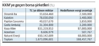 İlk olarak 2 Şubat'ta Naturel Yenilenebilir Enerji Kamuyu Aydınlatma Platformu’na yaptığı açıklamada Kur Korumalı TL Mevduat Programı'na katılma kararı aldığını ve 6 ay vadeli yüzde 21,174 ağırlıklı ortalama oran ile toplam 650 milyon 142 bin 689 TL mevduat hesabı açtığını duyurdu. Açıklamada, “Alınan bu karar neticesinde, yaklaşık 68 milyon TL beklenen kurumlar vergisi istisnası ve stopaj avantajı sağlanacaktır” denildi. İkinci adım Acıselsan Acıpayam Selüloz’dan geldi. 6 ay vadeli toplam 8 milyon 606 bin 979 TL tutarında mevduat hesabı açan şirket bu hesapla yaklaşık 507 bin 767 TL kurumlar vergisi istisnası ve stopaj avantajı sağlayacağını açıkladı.