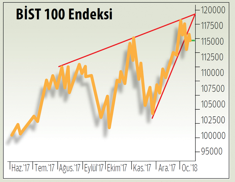 Borsa kâr satışlarının ardından tepki alımlarıyla karşılaştı. Tepki çıkışının dirençleri 117.000 ve 118.400 seviyelerinde. Bu seviyelerde satışlar görülebilir. Çıkışın devamı için 118.400’ün geçilmesi önemli. Bu durumda sonraki dirençler 122.000-123.000 seviyelerinde. Geri çekilmelerde ilk destekler 112.800-112.000 seviyelerinde bulunuyor. Sonraki destek 110.000’de. Geçen hafta vurgu yaptığımız düşüş formasyonlarından “yükselen takoz” çalışırken 117.000 geçilmediği sürece formasyon baskısı hissedilebilir.