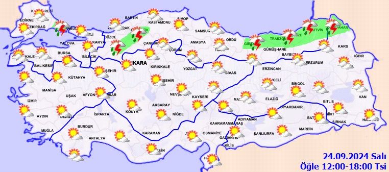Meteoroloji Genel Müdürlüğü tarafından yapılan son tahminlere göre: Ülkemiz genelinin parçalı bulutlu, Doğu Karadeniz kıyıları ile İstanbul'un Avrupa yakası, Karabük, Bolu, Artvin, Ardahan, Ağrı, Iğdır'ın güneyi, Van ve Erzurum'un kuzey kesimlerinin yerel sağanak ve gök gürültülü sağanak yağışlı geçeceği tahmin ediliyor. Sabah saatlerinde Marmara’nın doğusu ve Batı Karadeniz’de yer yer sis ve pus bekleniyor.