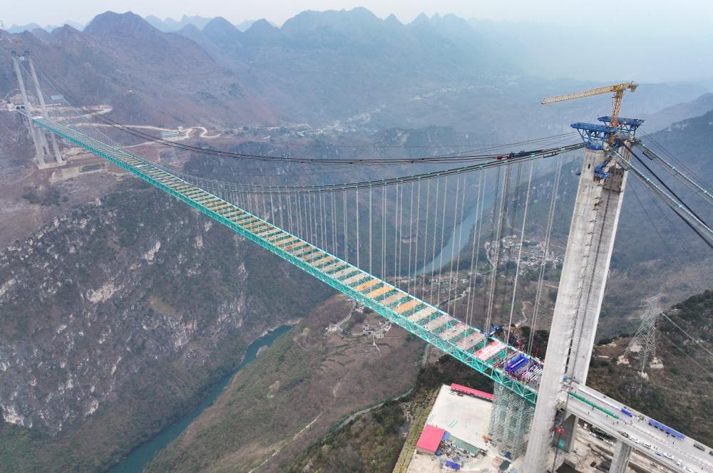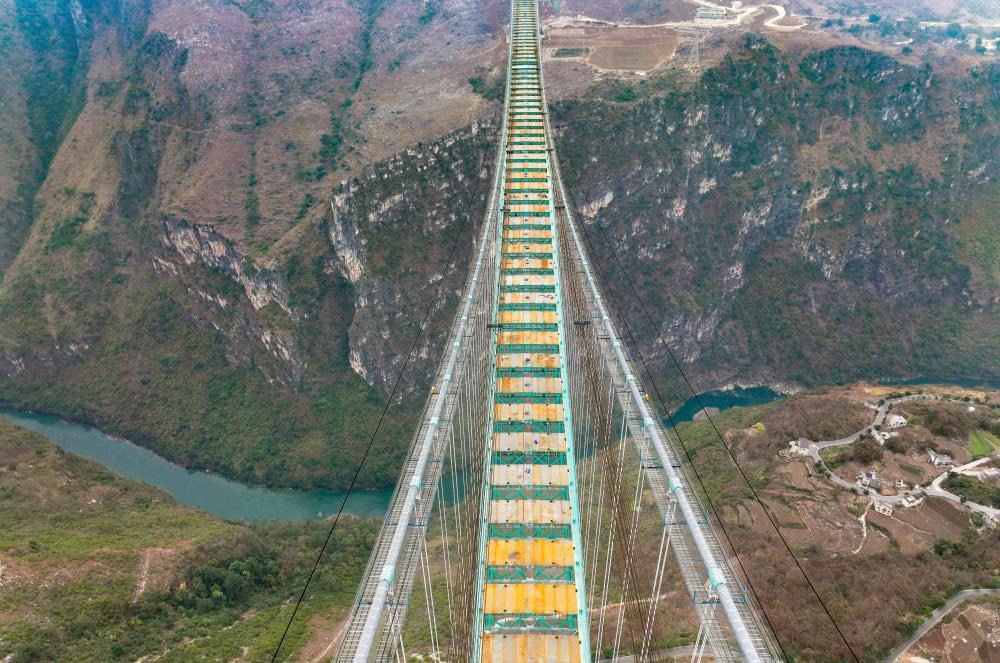 Beipan Nehri üzerinde yer alan ve 625 metre yüksekliğiyle dünyanın en yüksek köprüsü unvanını taşıyacak olan yapı, 1 bin 420 metre ana açıklığa ve 2 bin 890 metre toplam uzunluğa sahip.