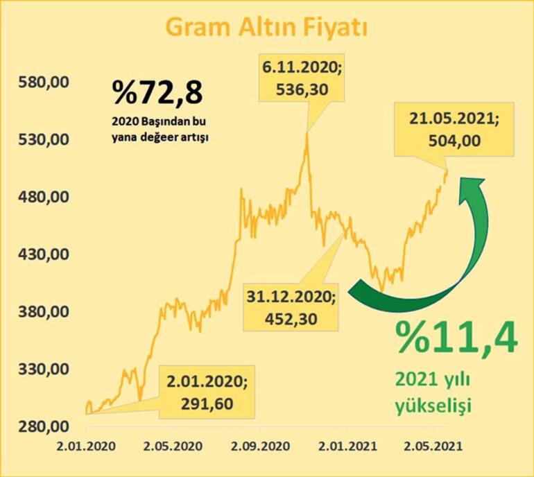 Türkiye’de altın fiyatlarını iki ayrı gösterge ile izliyoruz. Altının ons fiyatı ve dolar kuru. Altının gram fiyatı şöyle hesaplanıyor: Gram altının TL fiyatı, altının dolar bazlı ons fiyatının TL’ye çevrilmesi ve ons biriminin de grama çevrilmesi ile ortaya çıkıyor. Bir ons yaklaşık olarak 31,1 gramdır. Basit bir örnekle anlatacak olursak gram altın fiyatı: Altının ons değeri (1.880) x dolar kuru (8,39) / 31.1 = Altının gram fiyatı (507) Dolayısı ile altının TL bazında gram fiyatı hem dolar kurundan hem de altının ons fiyatından etkileniyor. Her ikisi yükselişe geçtiğinde altının gram fiyatı daha fazla yükseliyor.