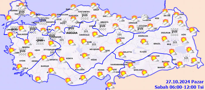 Ülkemizin kuzey ve doğu kesimlerinin parçalı bulutlu, diğer yerlerin az bulutlu ve açık geçeceği tahmin ediliyor. Marmara ile yurdun iç kesimlerinde yer yer sis ve pus bekleniyor.