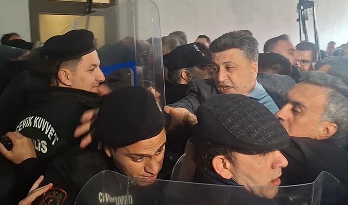 Meclis salonu koridorunda arbede çıktı, polis ekiplerinin yoğun önlem aldıkları görüldü.