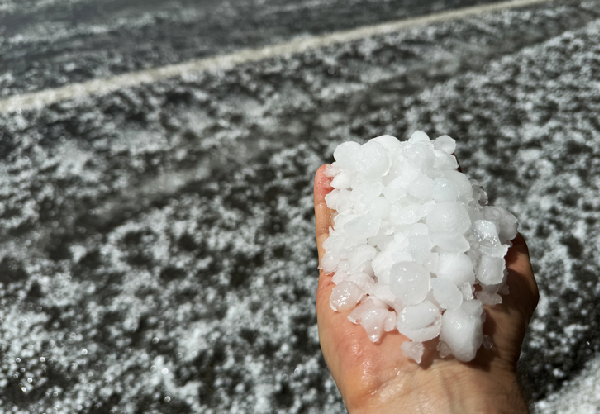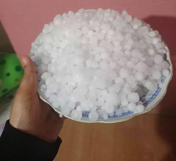 Salihli'de saat 14.30 sıralarında ceviz büyüklüğünde dolu yağdı. Yaklaşık 10 dakika süren yağışın ardından ilçenin birçok noktası beyaza büründü. Dolu, tarım arazilerinde zarara yol açtı.
