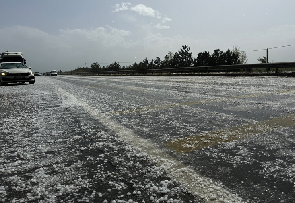 Ankara'nın Polatlı ilçesi ile Eskişehir'in Sivrihisar ilçesi arasında öğleden sonra etkili olan dolu, şehirler arası trafikte aksamalara neden oldu.