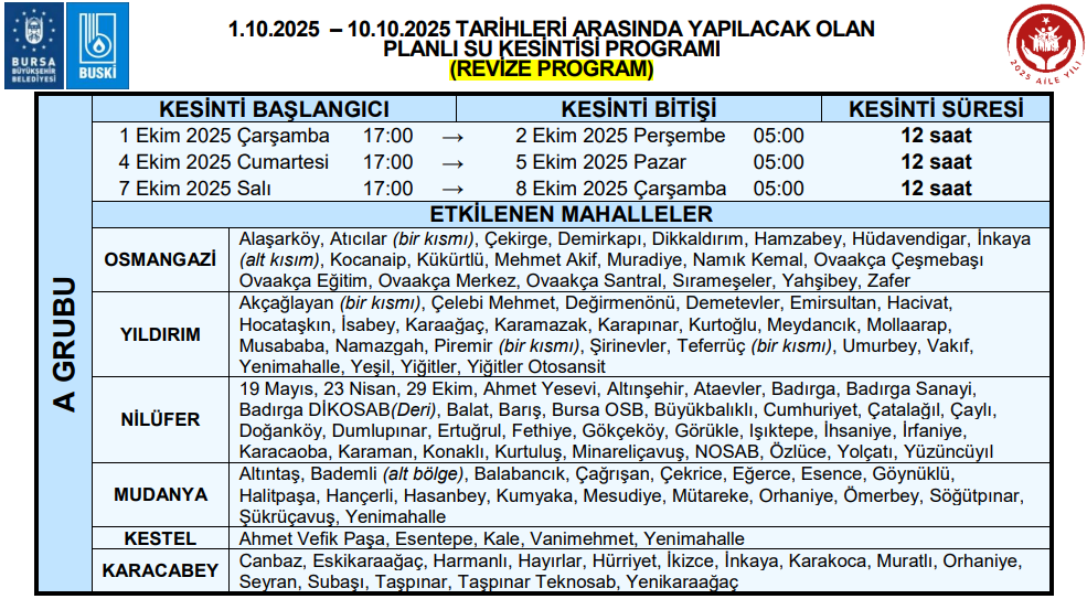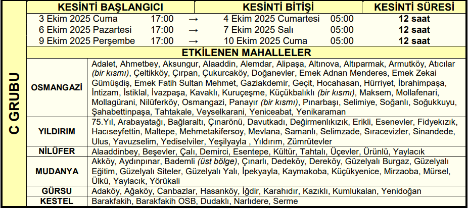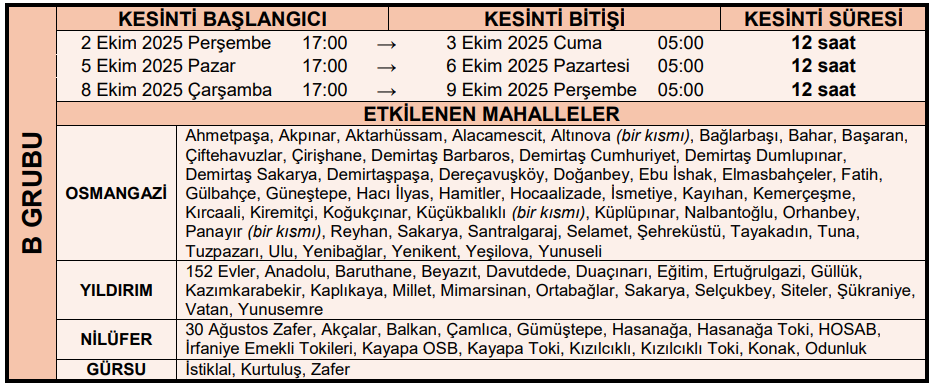 Sözcü'den Tuğba Nur Çelik'in haberine göre, şehir genelinde günlük 12 saate kadar ulaşması beklenen kesintilerden, Uludağ Üniversitesi, Şehir Hastanesi ve devlet hastanelerinin etkilenmeyeceği belirtildi.
