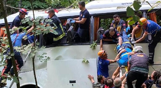 Kütahya Tavşanlı'dan Bursa Mudanya'ya yola çıkan 47 yolcunun bulunduğu tur otobüsü, Bursa'nın İnegöl ilçesi ile Kütahya'nın Domaniç ilçesi yakınlarındaki ormanlık alanda şarampole yuvarlandı.