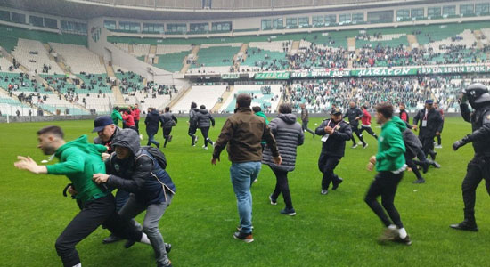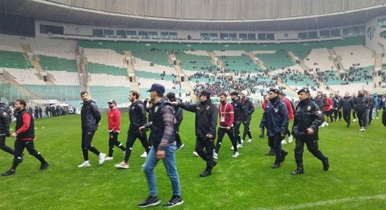 Polisin müdahalesiyle saha içerisindeki arbede sonlandırılırken, her iki takımın oyuncuları soyunma odasına geri döndü.