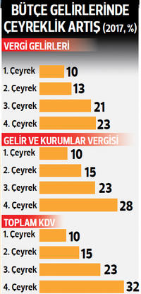 Vergi gelirleri 536 milyar lira olarak gerçekleşti. Bütçe hedefine göre 25 milyar, OVP’ye göre 15.6 milyar lira fazla gerçekleşen vergi gelirleri içinde en fazla artış yüzde 29.7 ile ithalde alınan KDV’de oldu. Kurumlar vergisi yüzde 23.1, banka ve sigorta muameleleri vergisi yüzde 19.9, gelir vergisi yüzde 16.3 artış gösterdi.