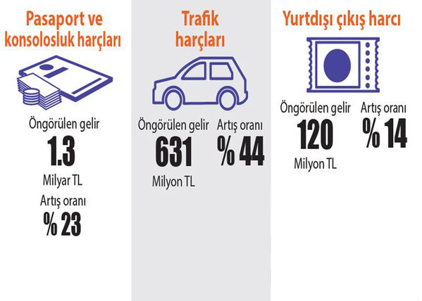 Gazete Habertürk'ten Ahmet Kıvaç'ın haberine göre trafik harçlarından beklenen gelir 468 milyon liradan 631 milyon liraya çıkacak.