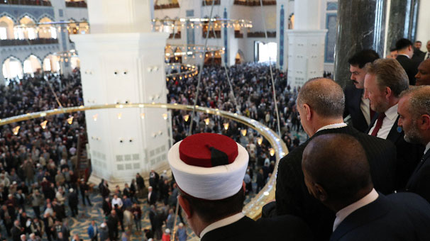 Açılış töreni öncesinde Türkiye Cumhurbaşkanı Recep Tayyip Erdoğan'ın yanı sıra resmi davetliler ve vatandaşlar cuma namazı için camiye geldi.
