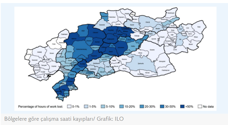 Bölgede çalışma saati bazında ekonomik aktivitenin yüzde 16 kesintiye uğrayacağını belirten ILO’ya göre bu, 657 bin 147 tam zamanlı işçinin çalışamayacağı anlamına geliyor.