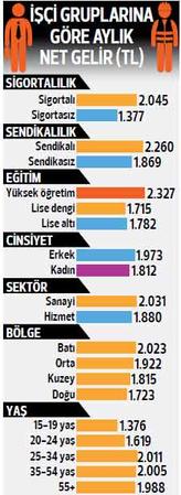 İşçilerde sigortasızlık oranı ise dikkat çekici. İşçilerin ortalama yüzde 82’si işyerinde sigortalı çalışıyor, yüzde 18’inin de sigortası yok. Ancak, sigortasızlıkİşçiysen işin zor: yüzde 17’si 1000 liranın altında ücret alıyor