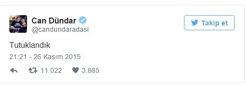 Cumhuriyet Gazetesi Genel Yayın Yönetmeni Can Dündar  ve Ankara Temsilcisi Erdem Gül,  MİT tırları soruşturması kapsamında tutuklandı.