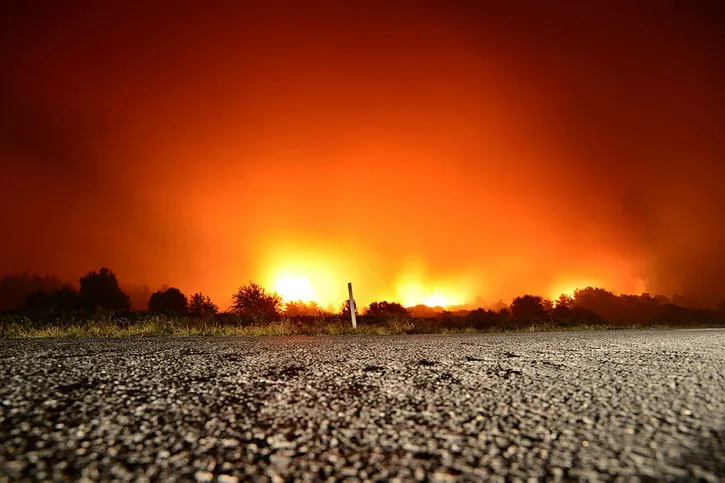 Bekir Pakdemirli, "Alevlere 14 dakika içinde müdahale edildi. Yangın 2 hatta başladı, tek hat üzerinde sürüyor. Yangına 20 araç ve 72 arazöz ile mühadele ediliyor. Sabahın ilk ışıklarıyla helikopterle de destek verilecek"