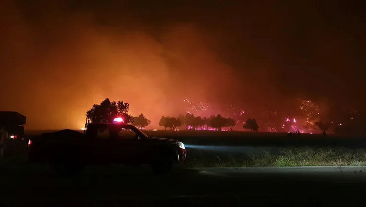 Çevredekilerin ihbarı üzerine bölgeye itfaiye ve AFAD ekipleriyle çeşitli özelliklerde 40 araç, 15 dozer ve 100 arazöz ile çok sayıda işçi sevk edildi. Orman Bölge Müdürü Refik Ulusoy, yangın alanına intikal eden ekiplerin çalışmaya başladığını bildirdi. Saat 22.40'ta başladığı bildirilen yangın, Behramlı köyü ile Davutbey Çiftliği mevkilerinde sürüyor. Rüzgarın etkisiyle ara ara büyüyen yangının söndürülmesi için çalışmalar devam ediyor.