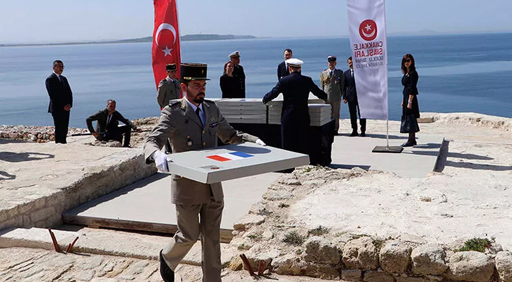 17 Fransız askerinin kemikleri bugün Seddülbahir Kalesi’nde düzenlenen törenle Çanakkale Savaşları Gelibolu Tarihi Alan Başkanı İsmail Kaşdemir tarafından Fransız heyetine teslim edildi.